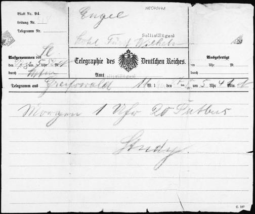 Telegramm von Eduard Study an Friedrich Engel vom 27.8.1900