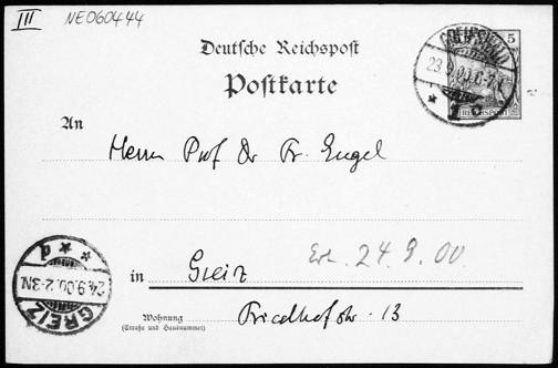 Postkarte von Eduard Study an Friedrich Engel vom 23.9.1900