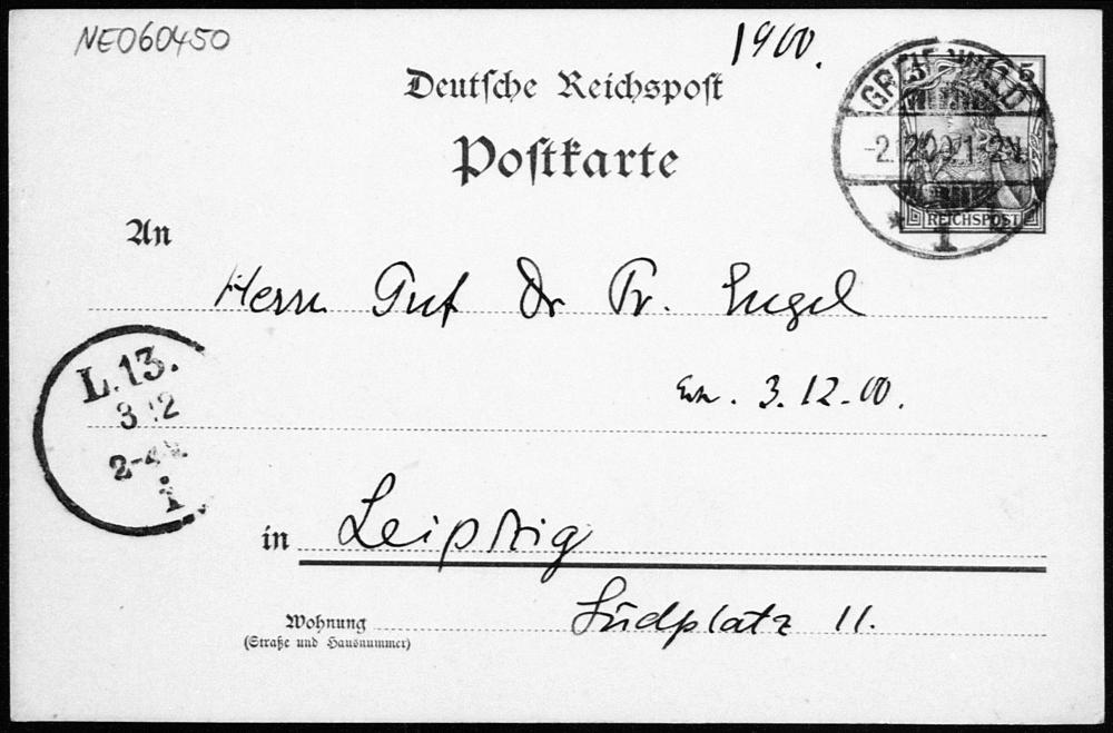 Postkarte von Eduard Study an Friedrich Engel vom 1.12.1900