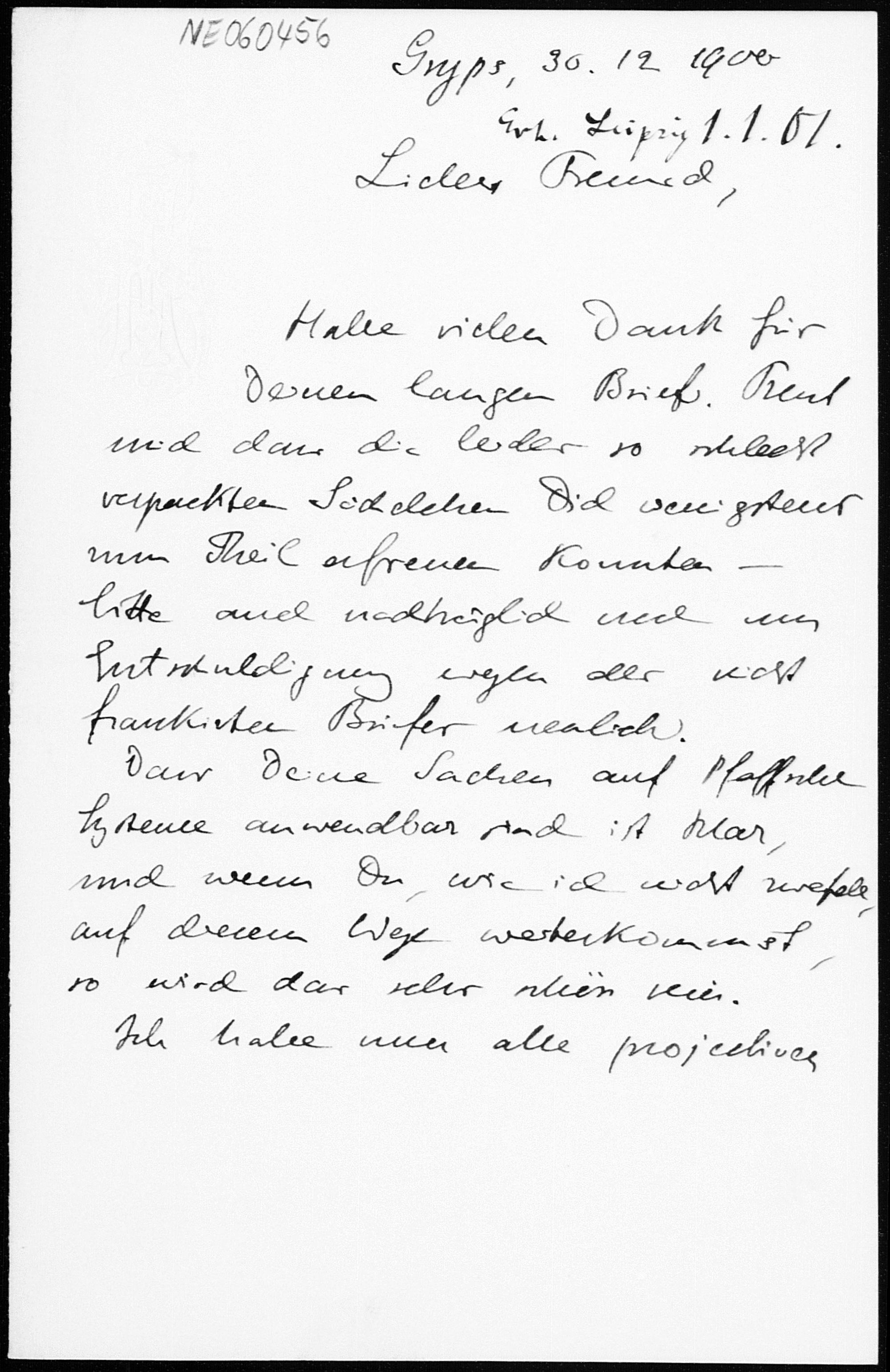Brief von Eduard Study an Friedrich Engel vom 30.12.1900