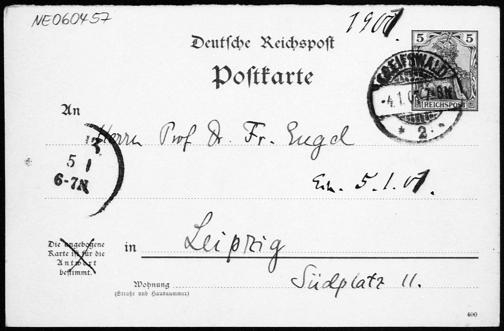 Postkarte von Eduard Study an Friedrich Engel vom 4.1.1901