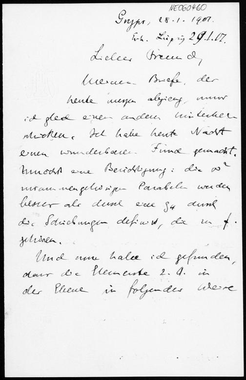Brief von Eduard Study an Friedrich Engel vom 28.1.1901