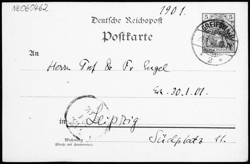 Postkarte von Eduard Study an Friedrich Engel vom 29.1.1901