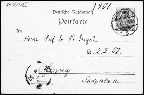 Postkarte von Eduard Study an Friedrich Engel vom 31.1.1901