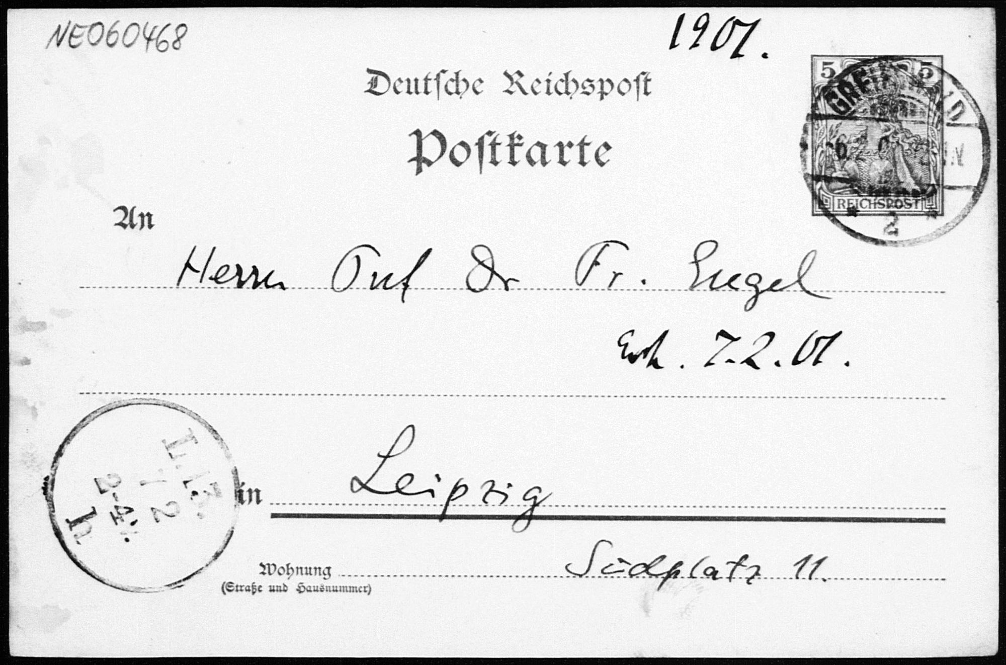 Postkarte von Eduard Study an Friedrich Engel vom 6.2.1901