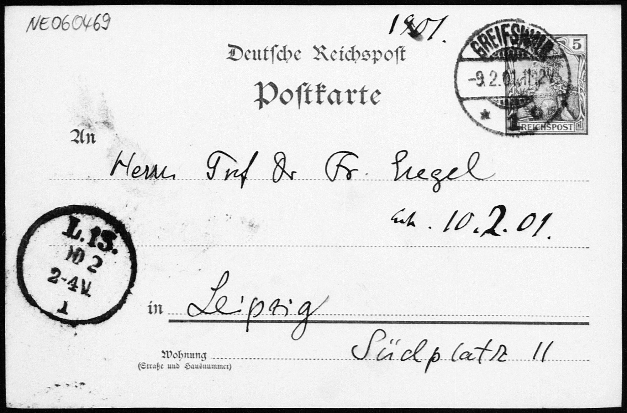 Postkarte von Eduard Study an Friedrich Engel vom 9.2.1901