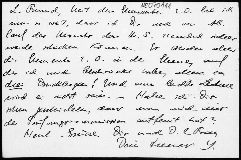 Postkarte von Eduard Study an Friedrich Engel vom 6.6.1901