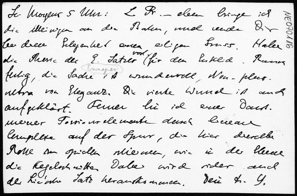 Postkarte von Eduard Study an Friedrich Engel vom 6.7.1901