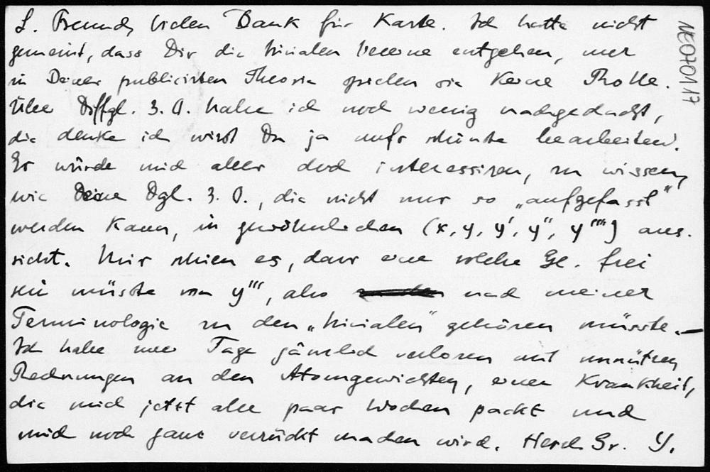 Postkarte von Eduard Study an Friedrich Engel vom 8.7.1901