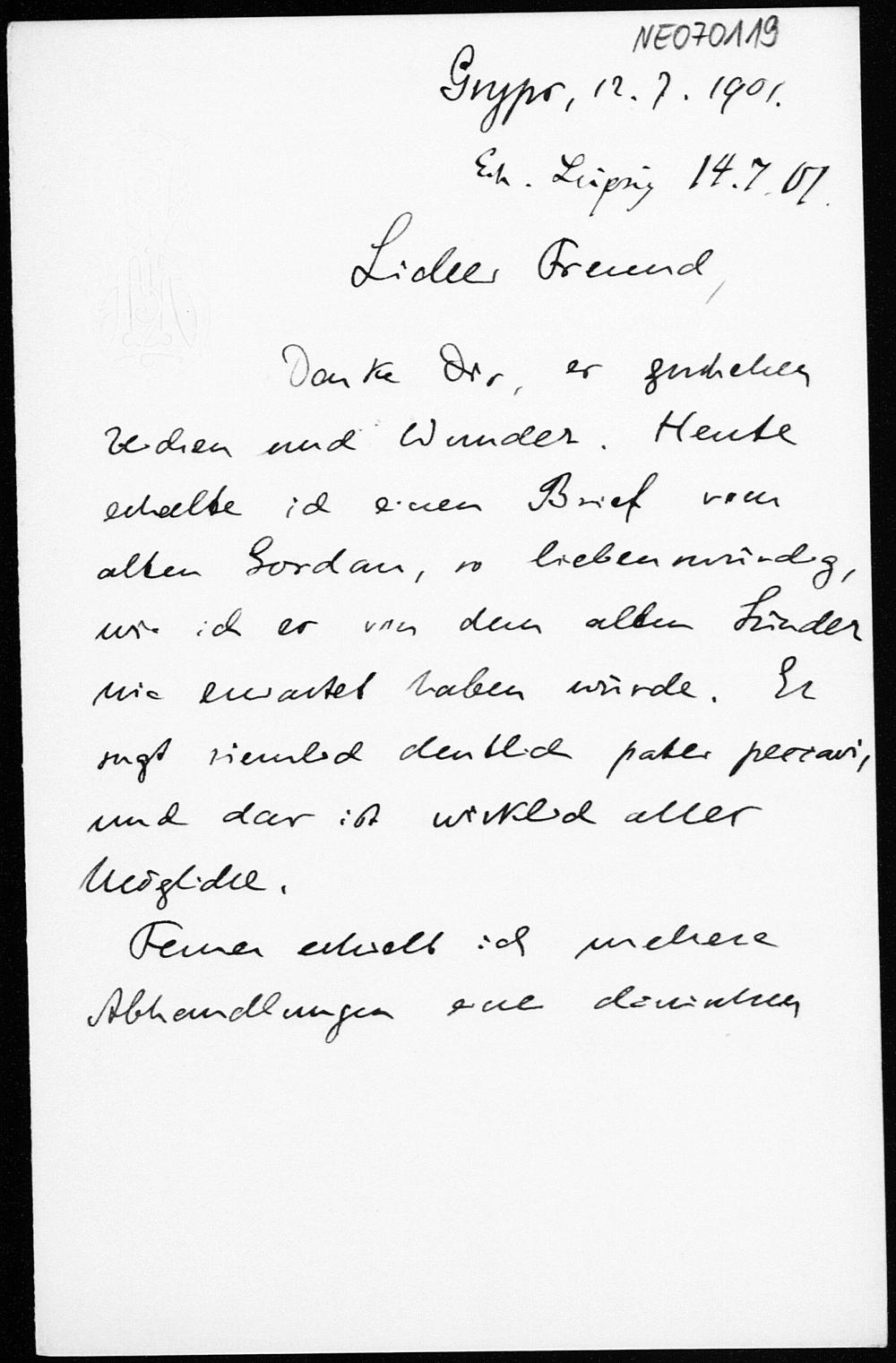 Brief von Eduard Study an Friedrich Engel vom 12.7.1901