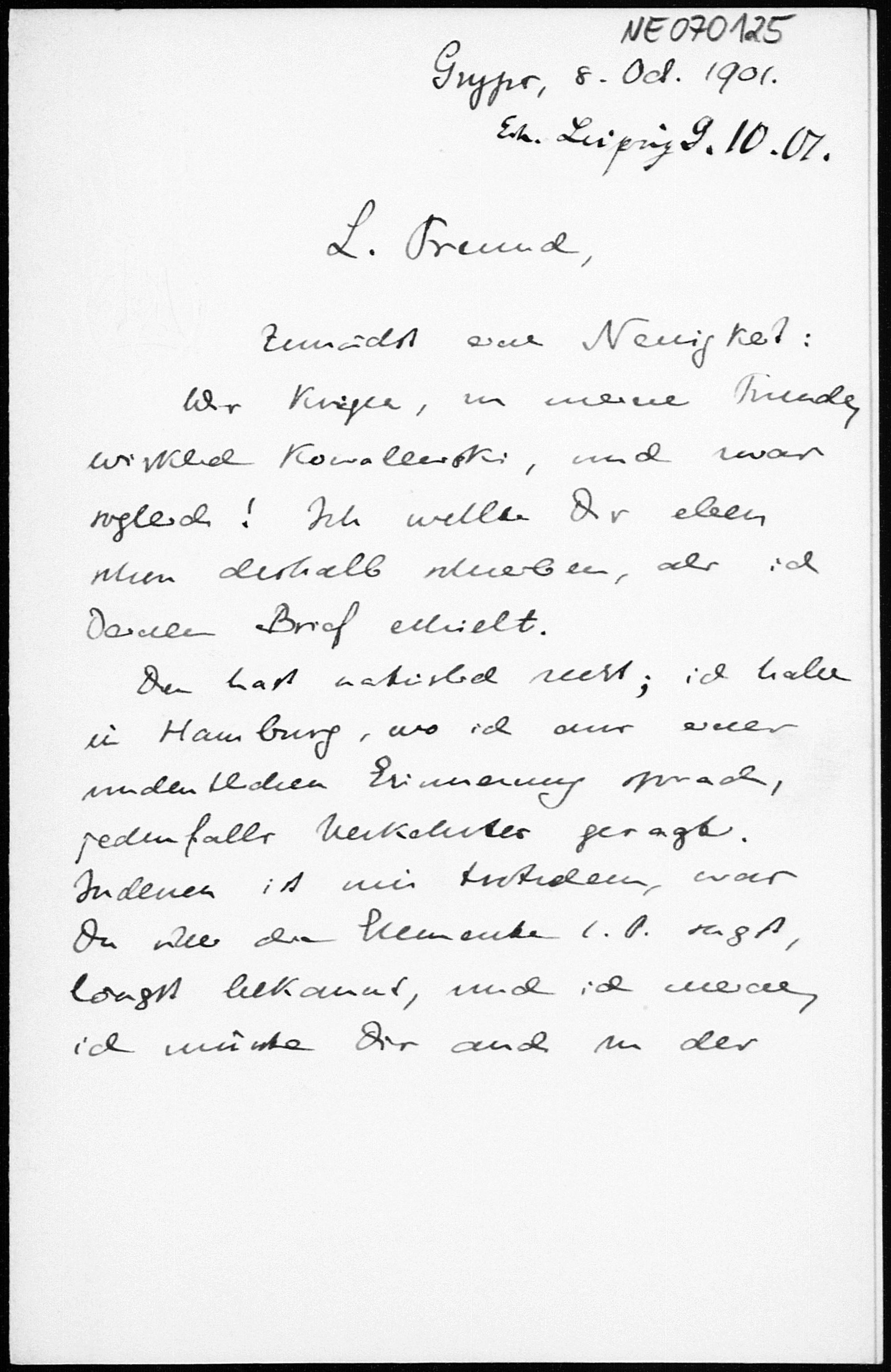 Brief von Eduard Study an Friedrich Engel vom 8.10.1901