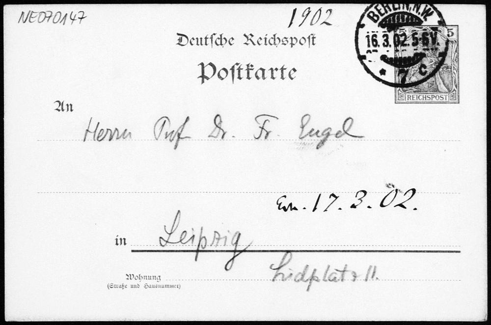 Postkarte von Eduard Study an Friedrich Engel vom 16.3.1902