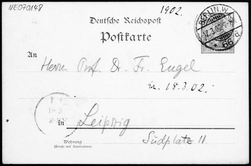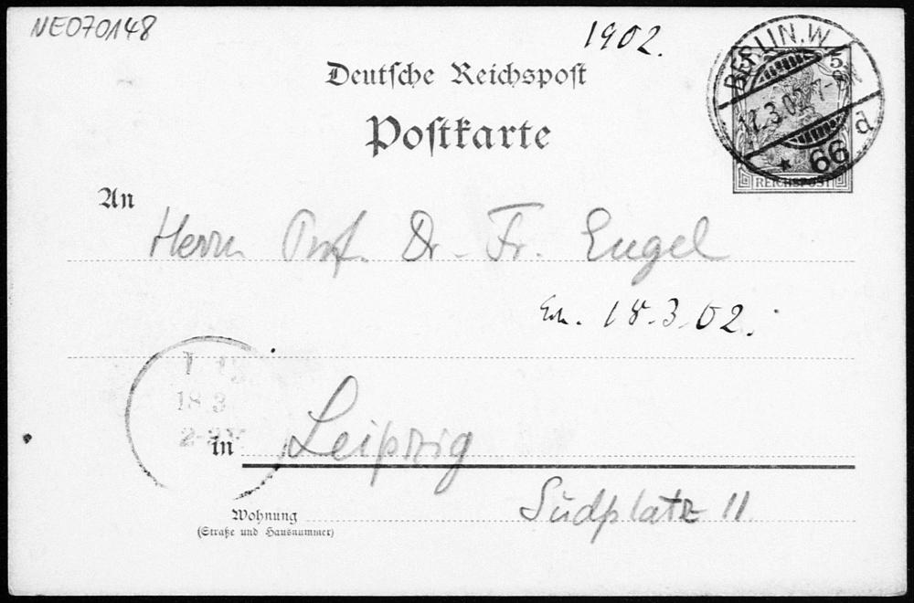 Postkarte von Eduard Study an Friedrich Engel vom 17.3.1902
