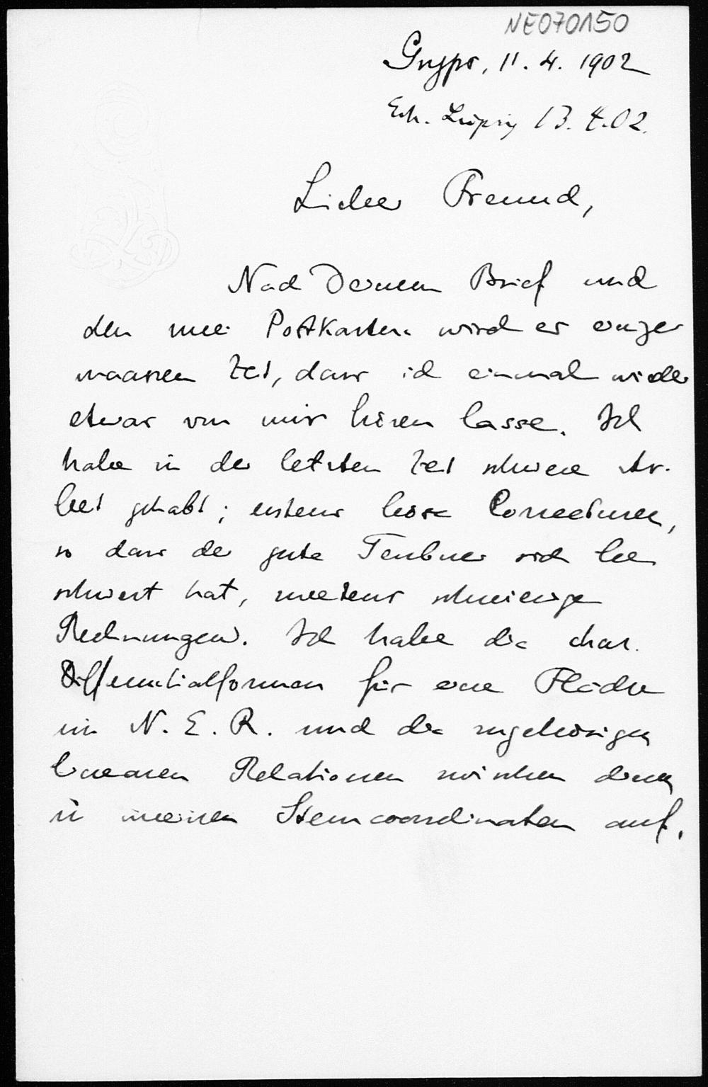 Brief von Eduard Study an Friedrich Engel vom 11.4.1902