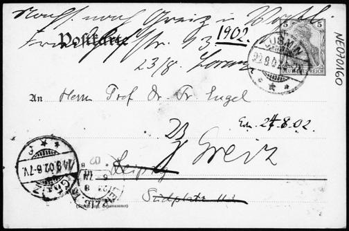 Postkarte von Eduard Study an Friedrich Engel vom 22.8.1902