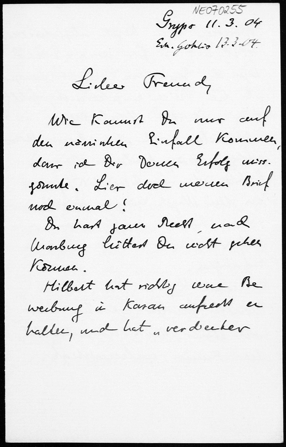 Brief von Eduard Study an Friedrich Engel vom 11.3.1904