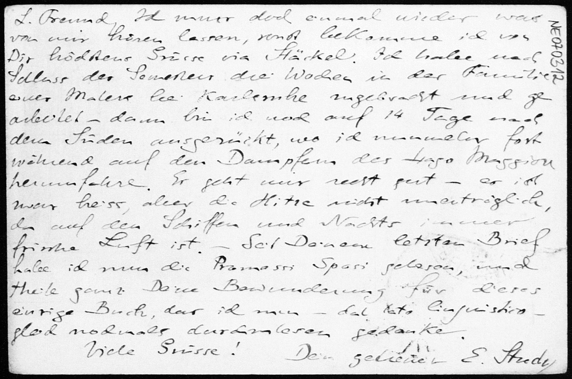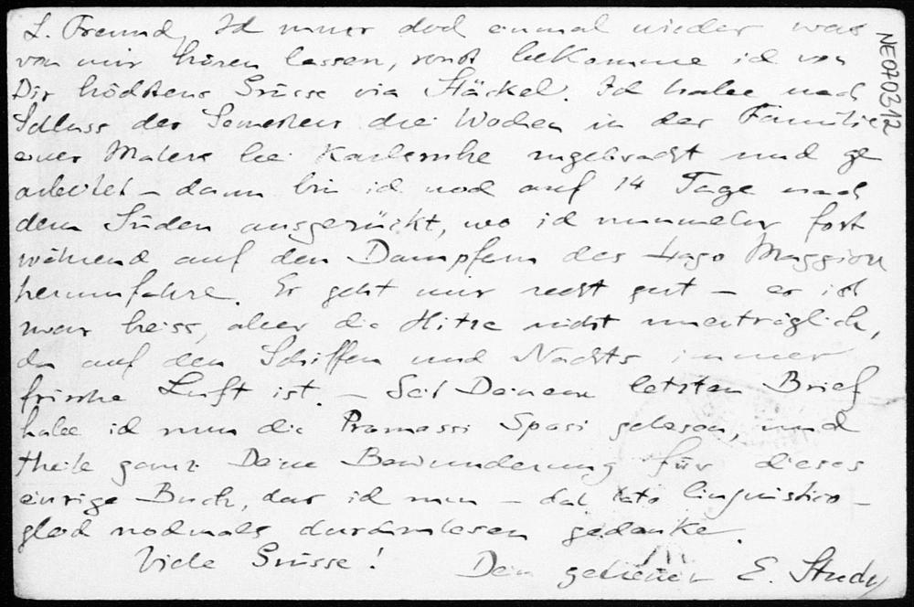 Postkarte von Eduard Study an Friedrich Engel vom 8.9.1906