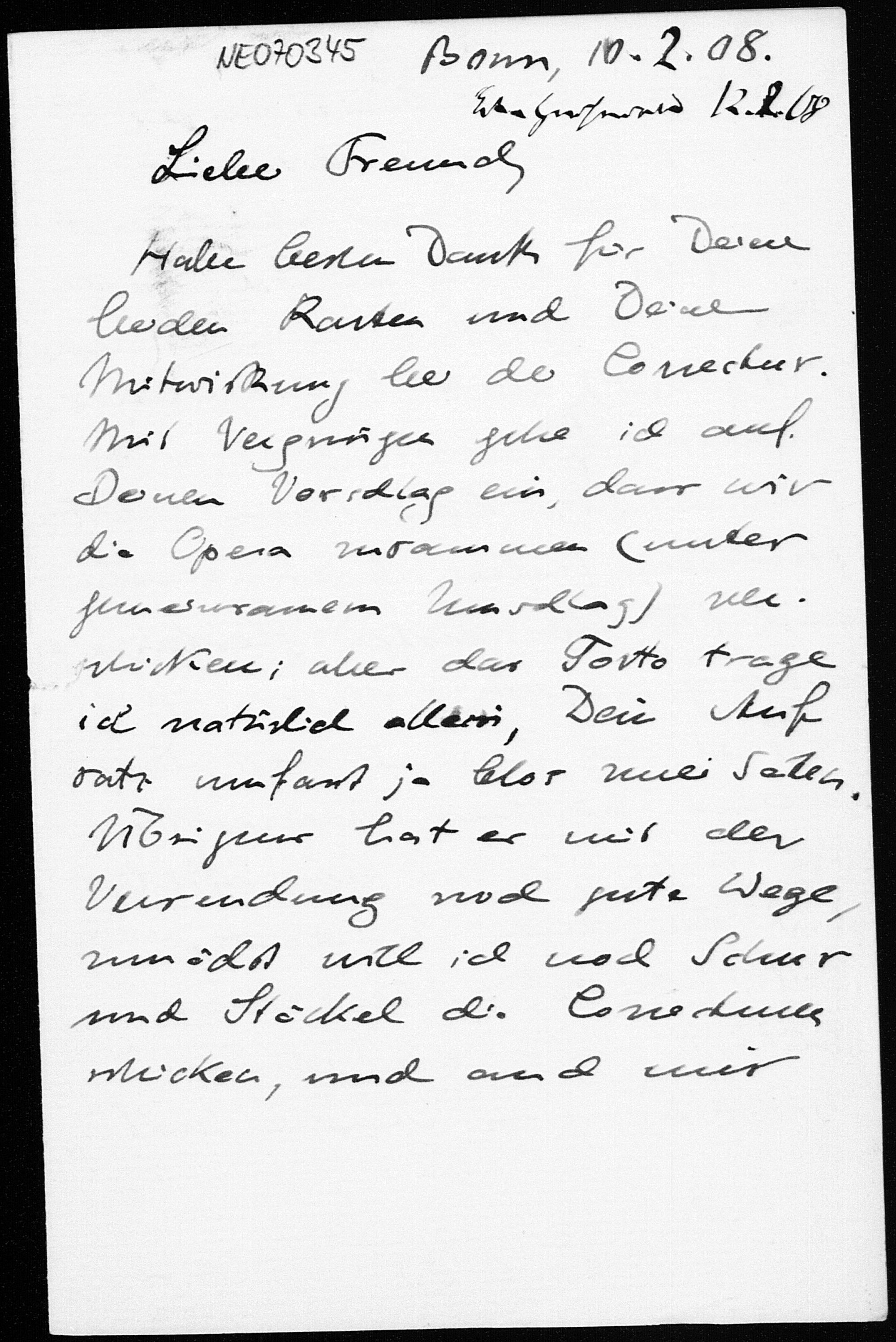 Brief von Eduard Study an Friedrich Engel vom 10.2.1908