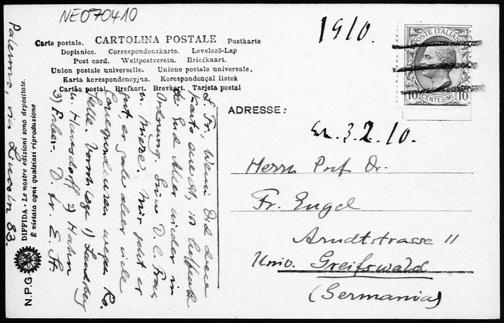 Ansichtskarte von Eduard Study an Friedrich Engel von Januar/Februar 1910