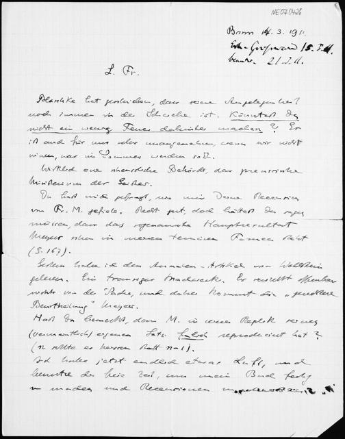 Brief von Eduard Study an Friedrich Engel vom 14.3.1911