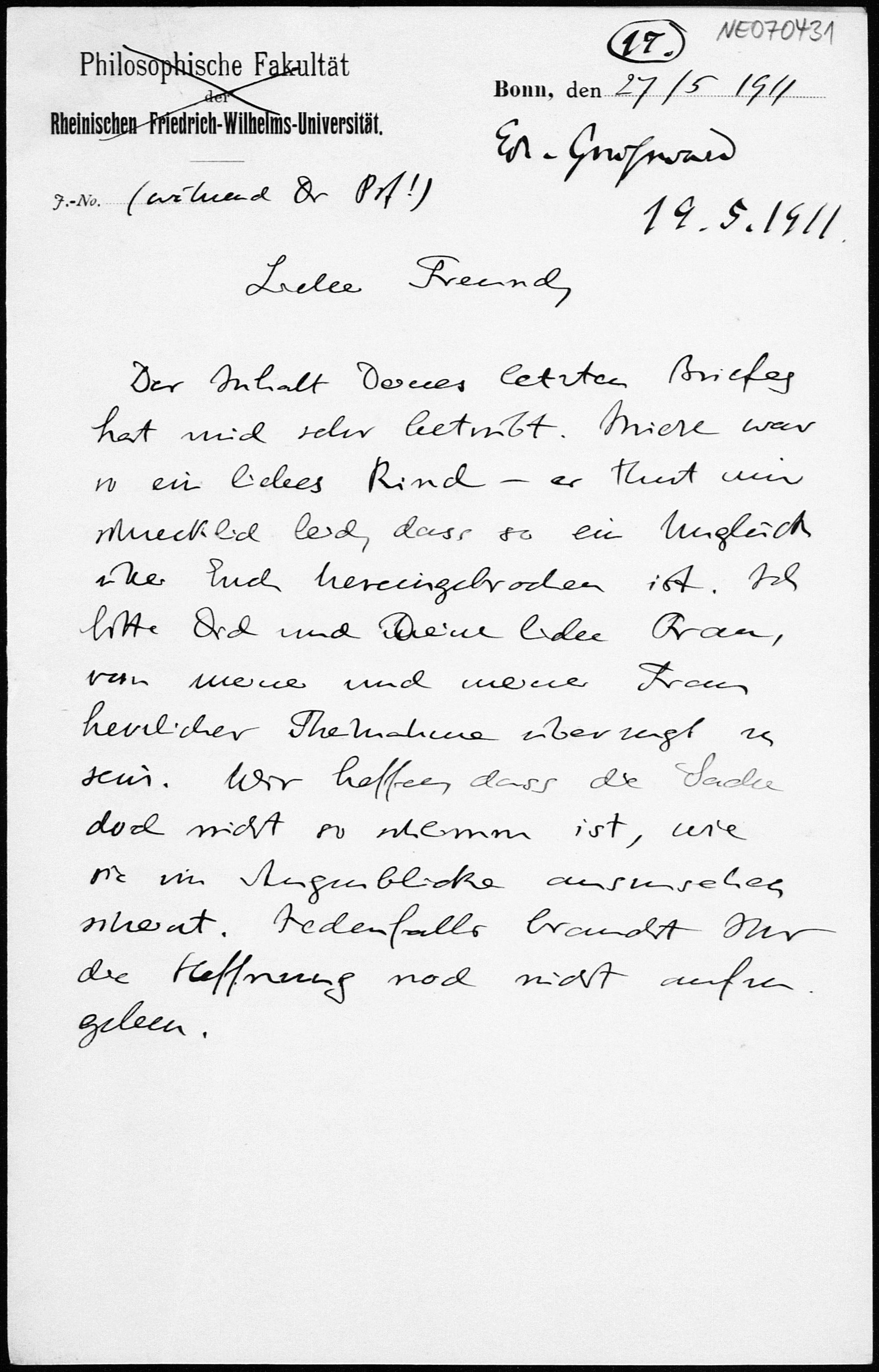 Brief von Eduard Study an Friedrich Engel vom 17.5.1911