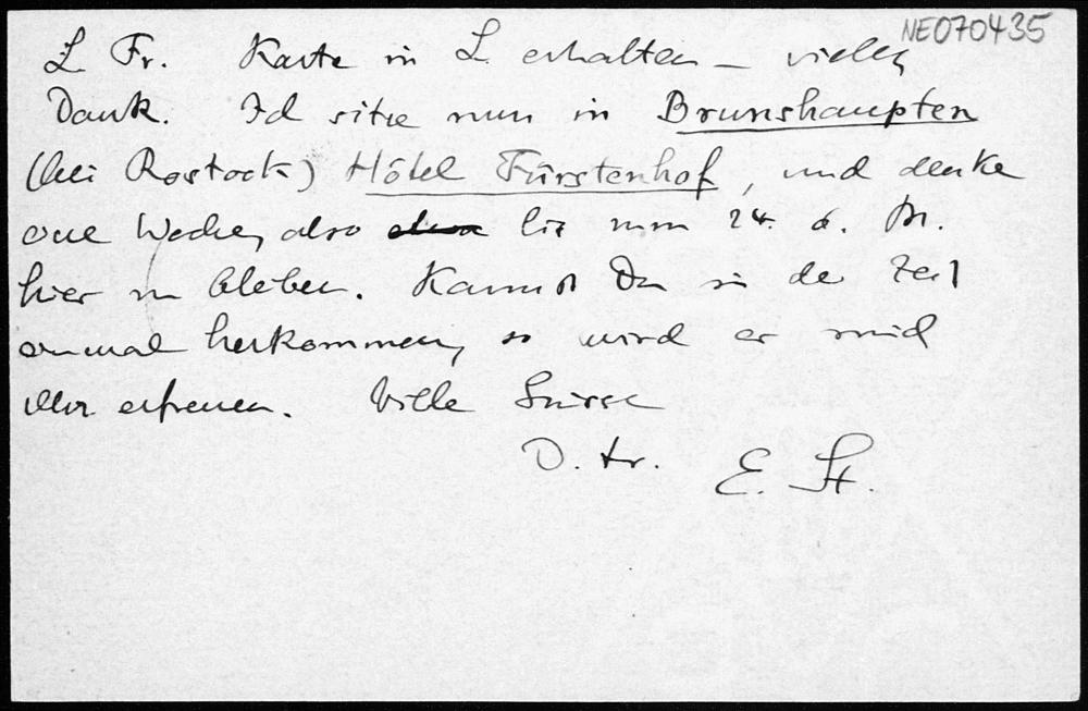 Postkarte von Eduard Study an Friedrich Engel vom 17.8.1911