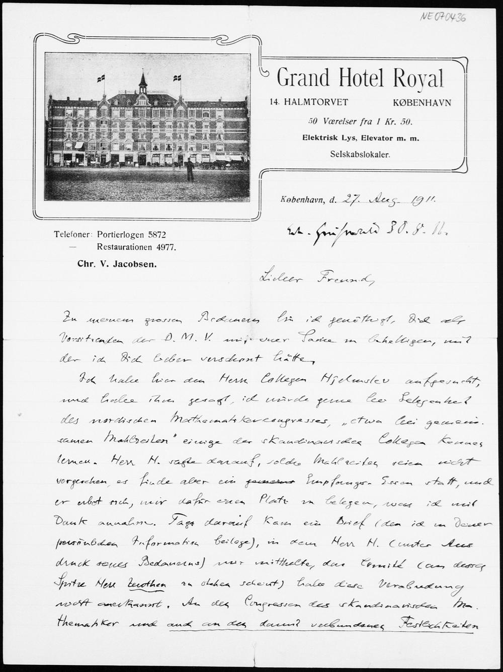 Brief von Eduard Study an Friedrich Engel vom 27.8.1911
