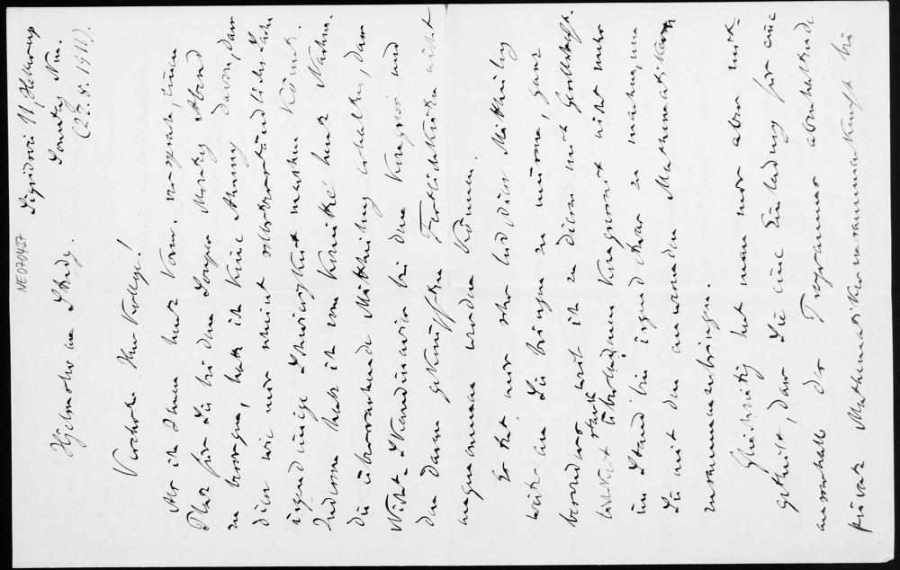 Abschriften von Briefen von Johannes Hjelmslev an Eduard Study vom 27.8.1911 und von Eduard Study an Friedrich Engel vom 27.8.1911