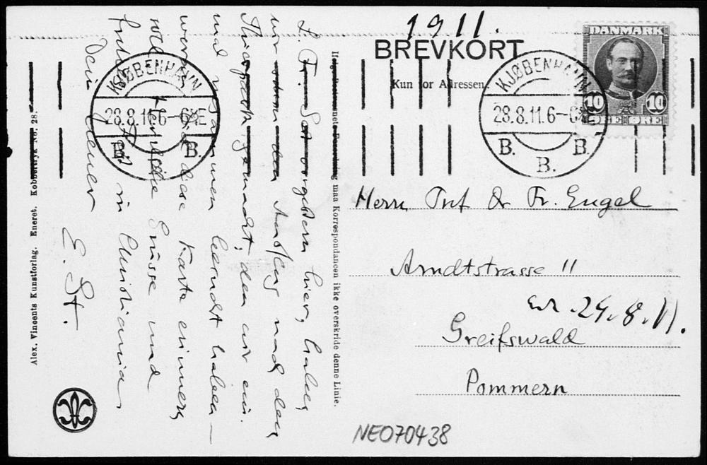 Ansichtskarte von Eduard Study an Friedrich Engel vom 28.8.1911