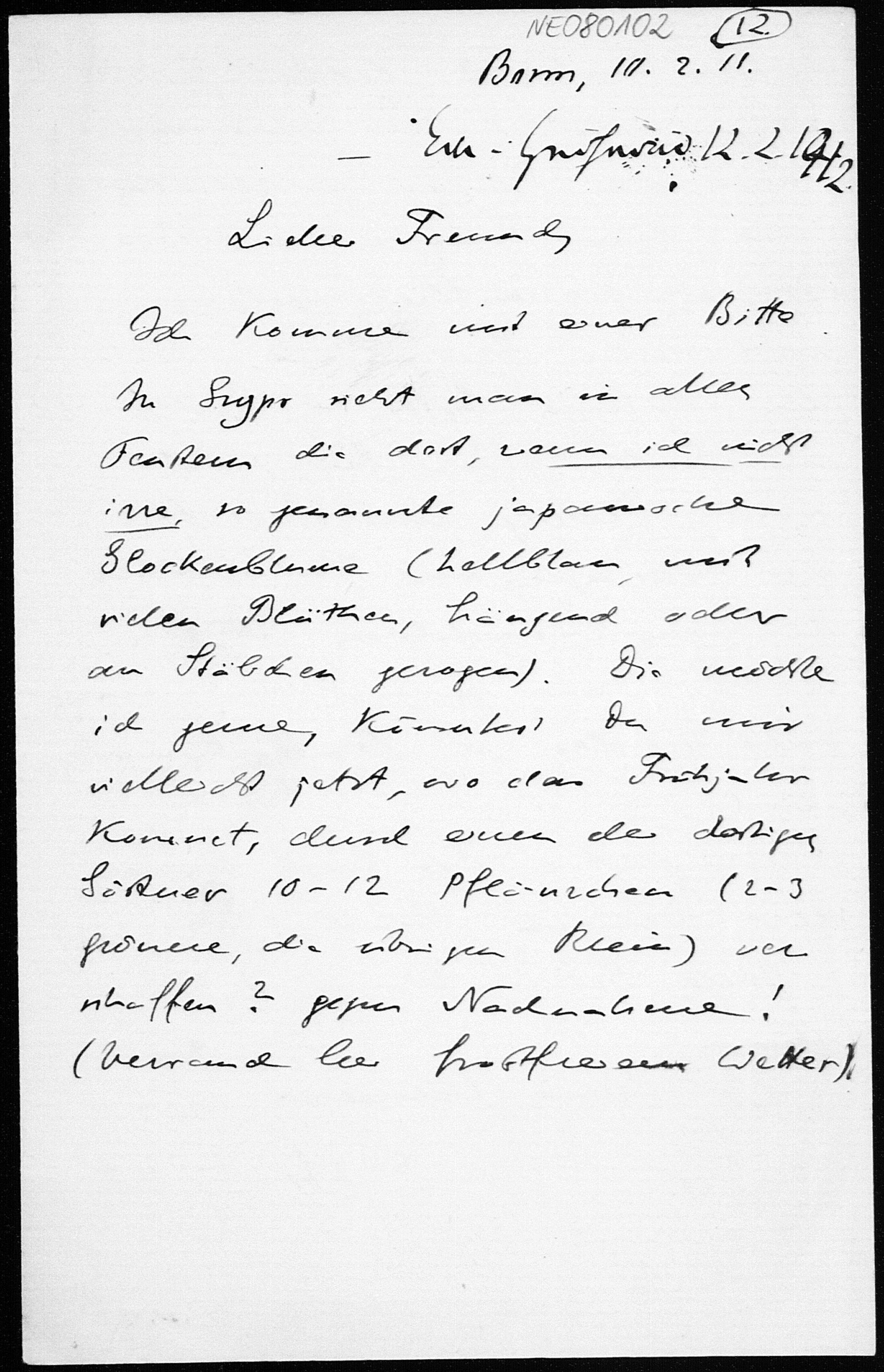 Brief von Eduard Study an Friedrich Engel vom 10.2.1912