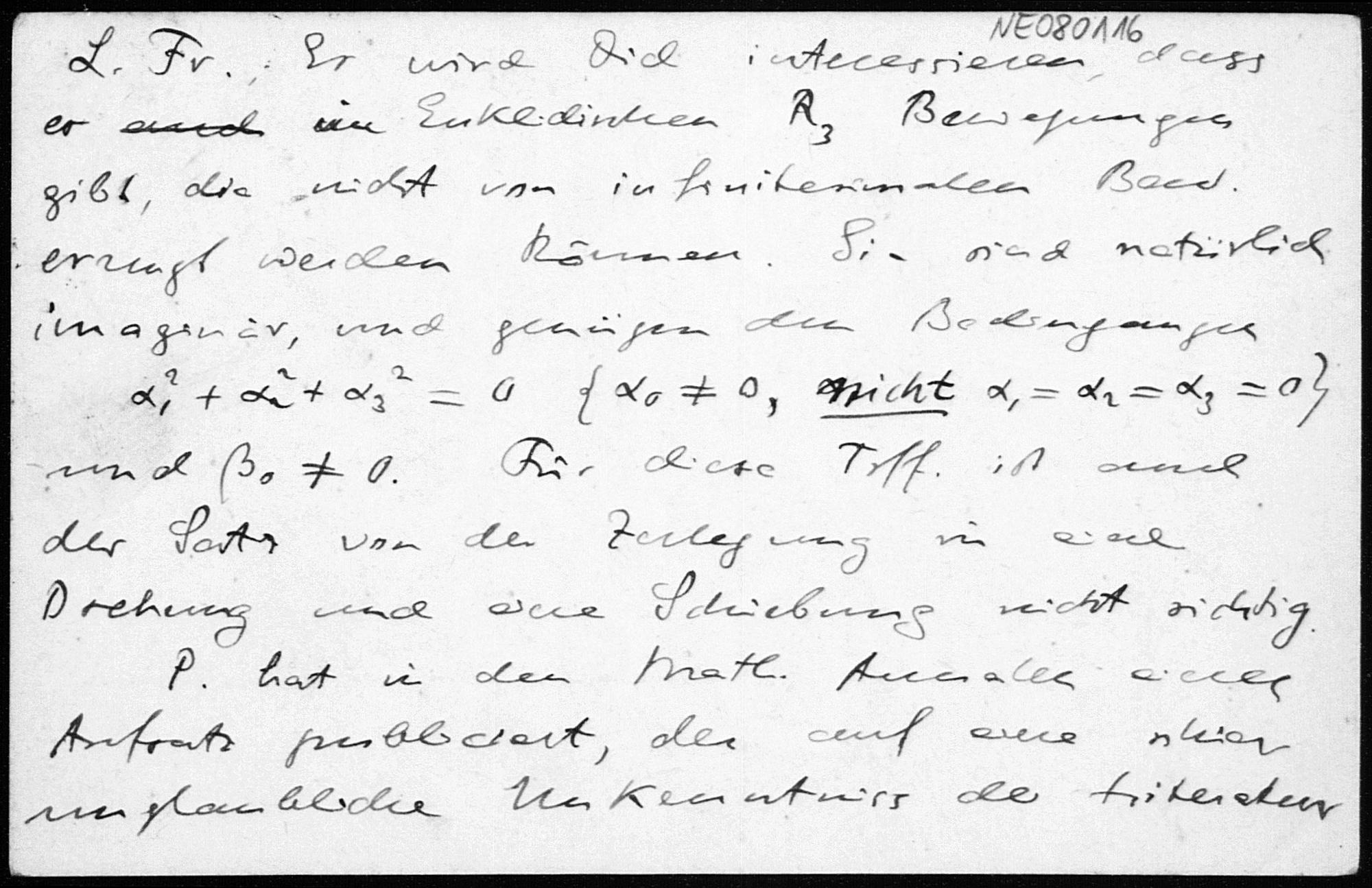 Postkarte von Eduard Study an Friedrich Engel vom 16.4.1913