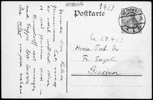 Postkarte von Eduard Study an Friedrich Engel vom 1?.4.1913