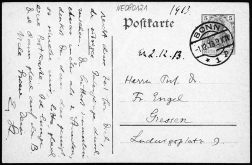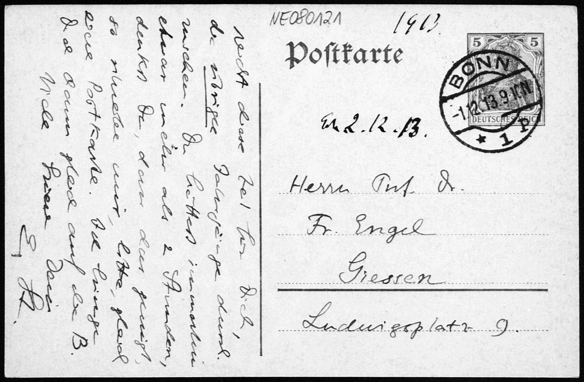 Postkarte von Eduard Study an Friedrich Engel vom 1.12.1913