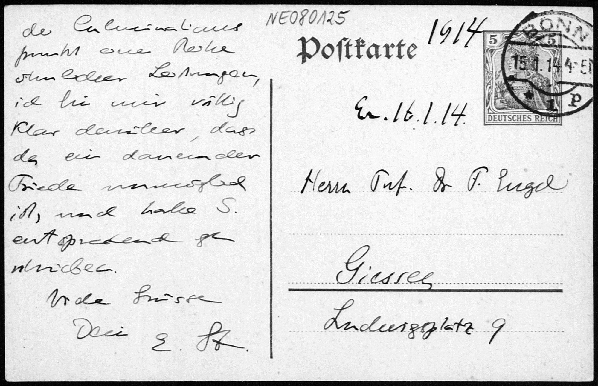 Postkarte von Eduard Study an Friedrich Engel vom 15.1.1914