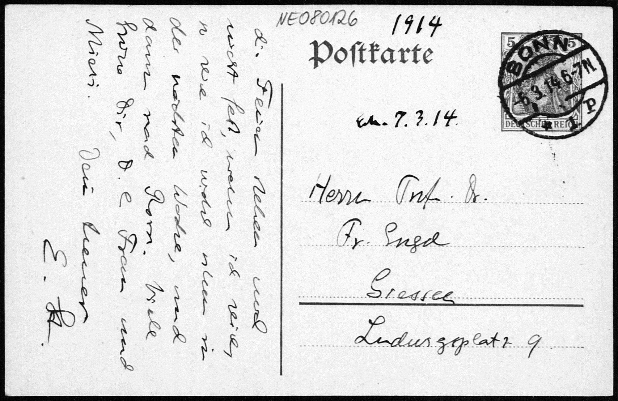 Postkarte von Eduard Study an Friedrich Engel vom 6.3.1914