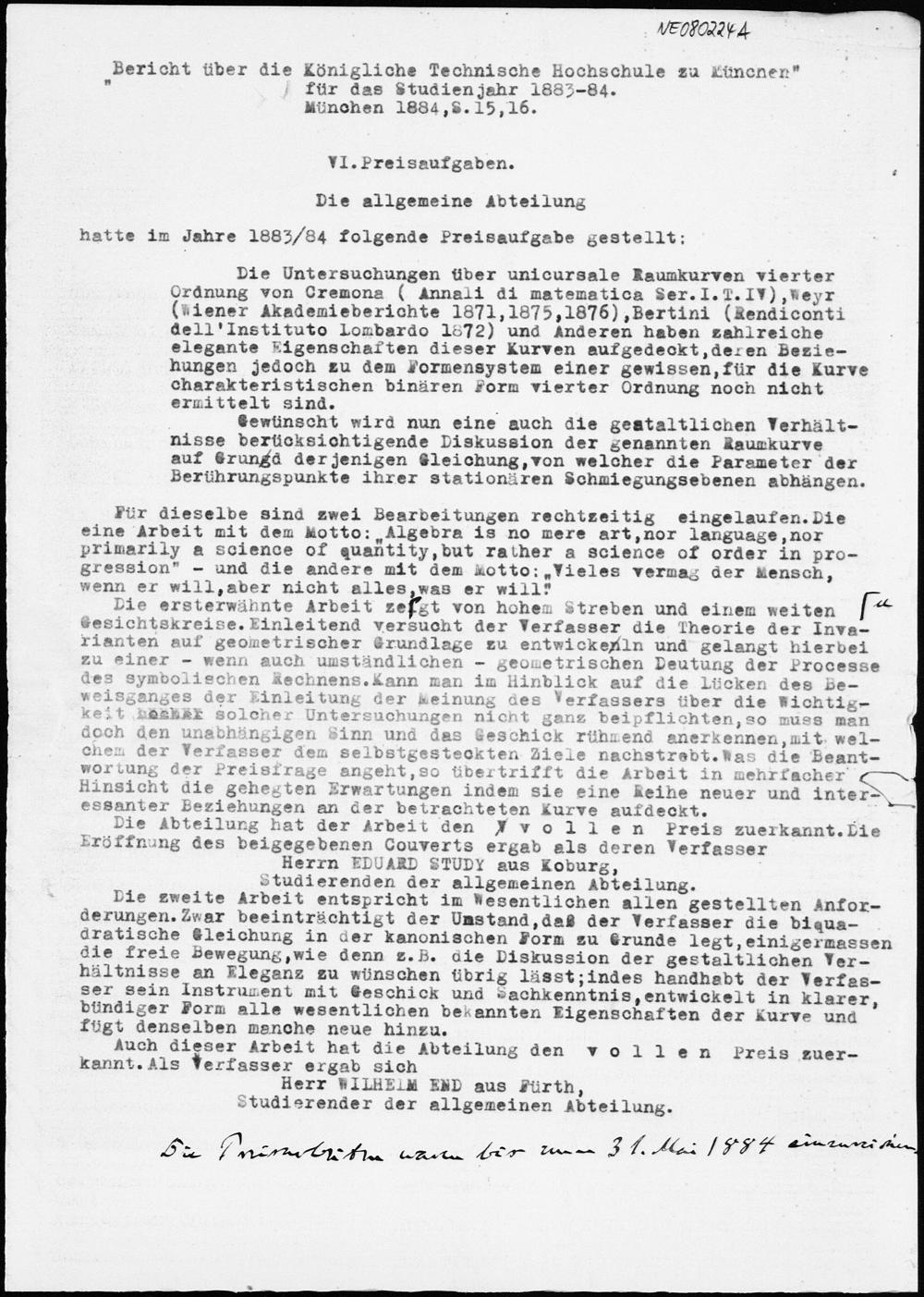 "Bericht über die Königliche Technische Hochschule zu München" für das Studienjahr 1883-84. München 1884, S. 15, 16