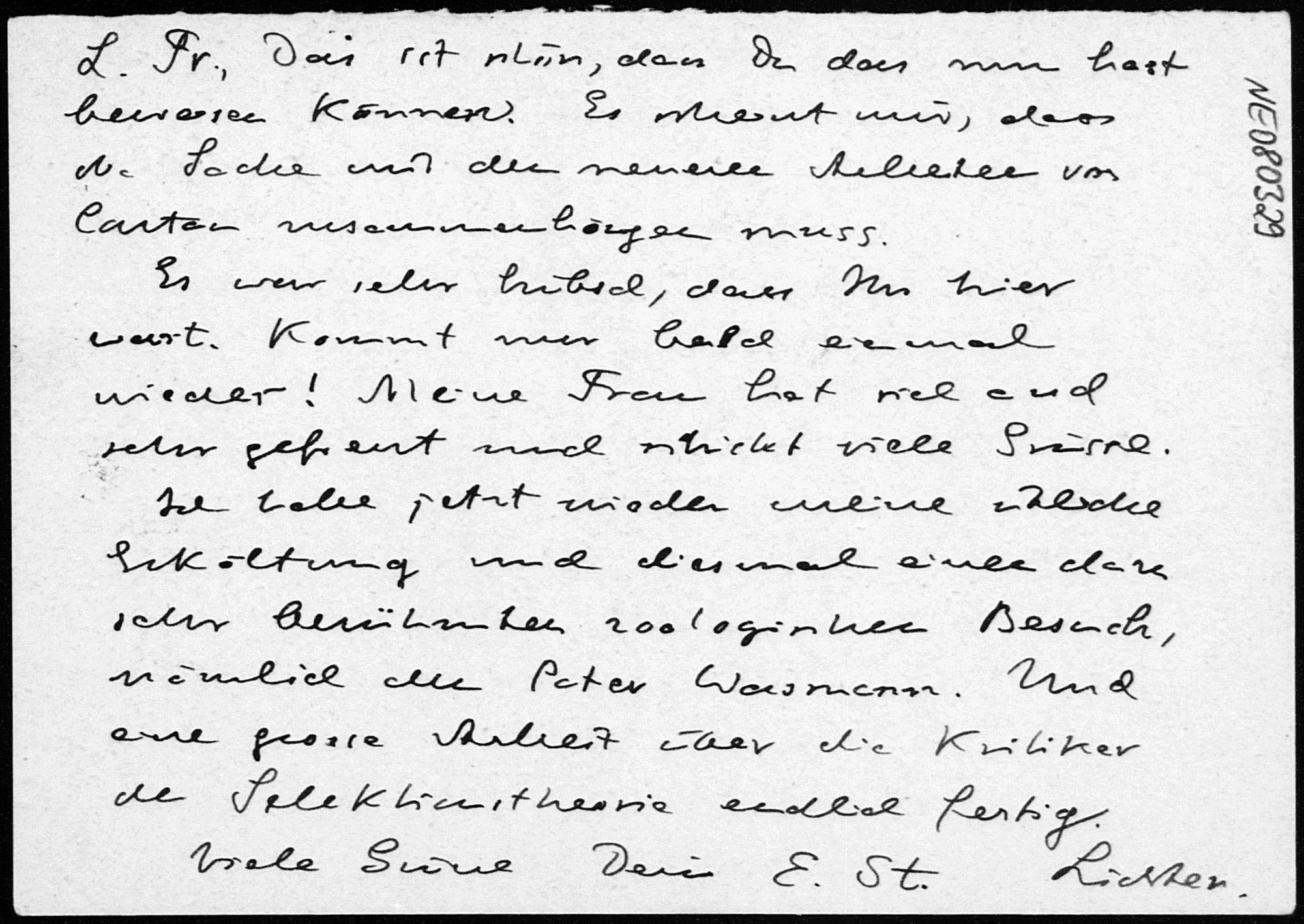 Postkarte von Eduard Study an Friedrich Engel vom 22.9.1929