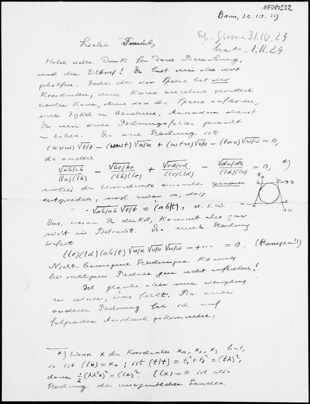 Brief von Eduard Study an Friedrich Engel vom 30.10.1929