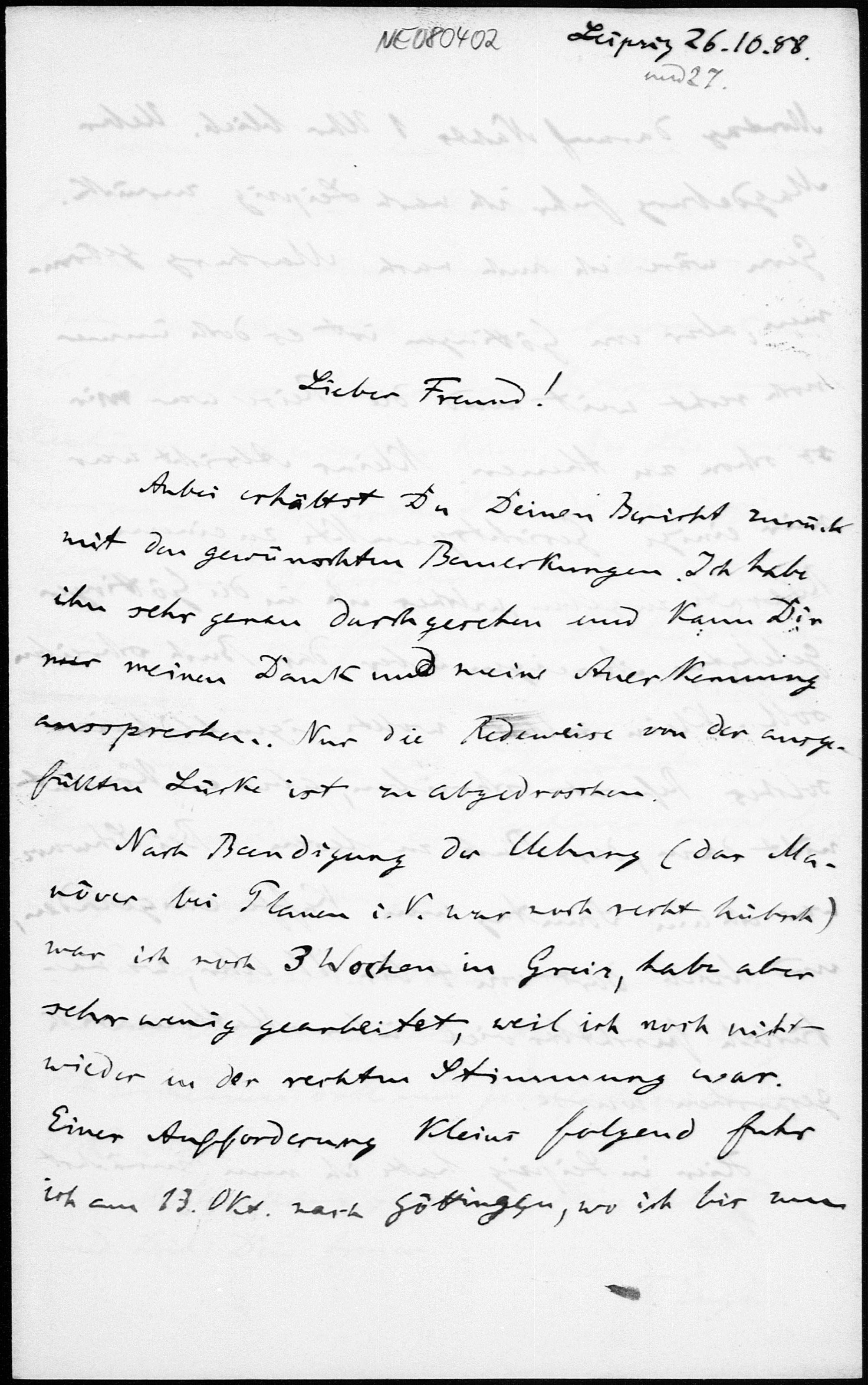 Brief von Friedrich Engel an Eduard Study vom 26./27.10.1888
