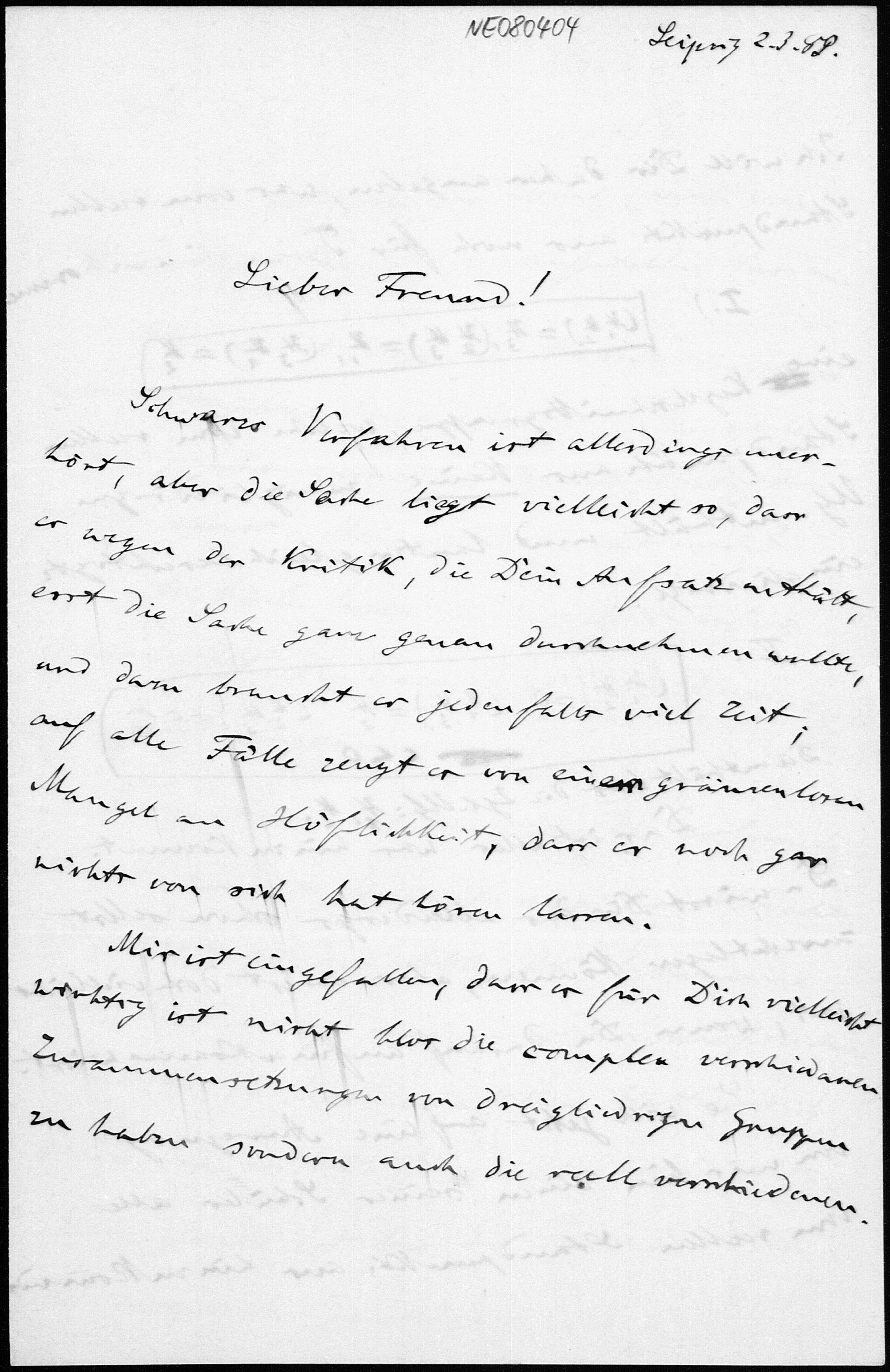 Brief von Friedrich Engel an Eduard Study vom 2.3.1889