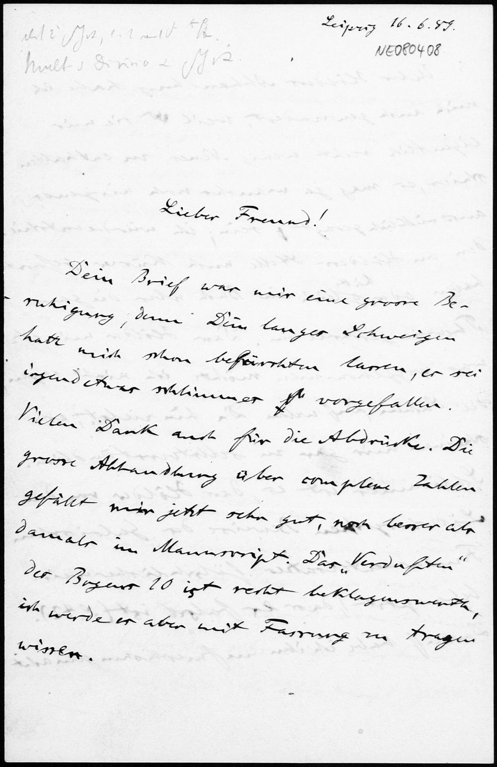 Brief von Friedrich Engel an Eduard Study vom 16.6.1889