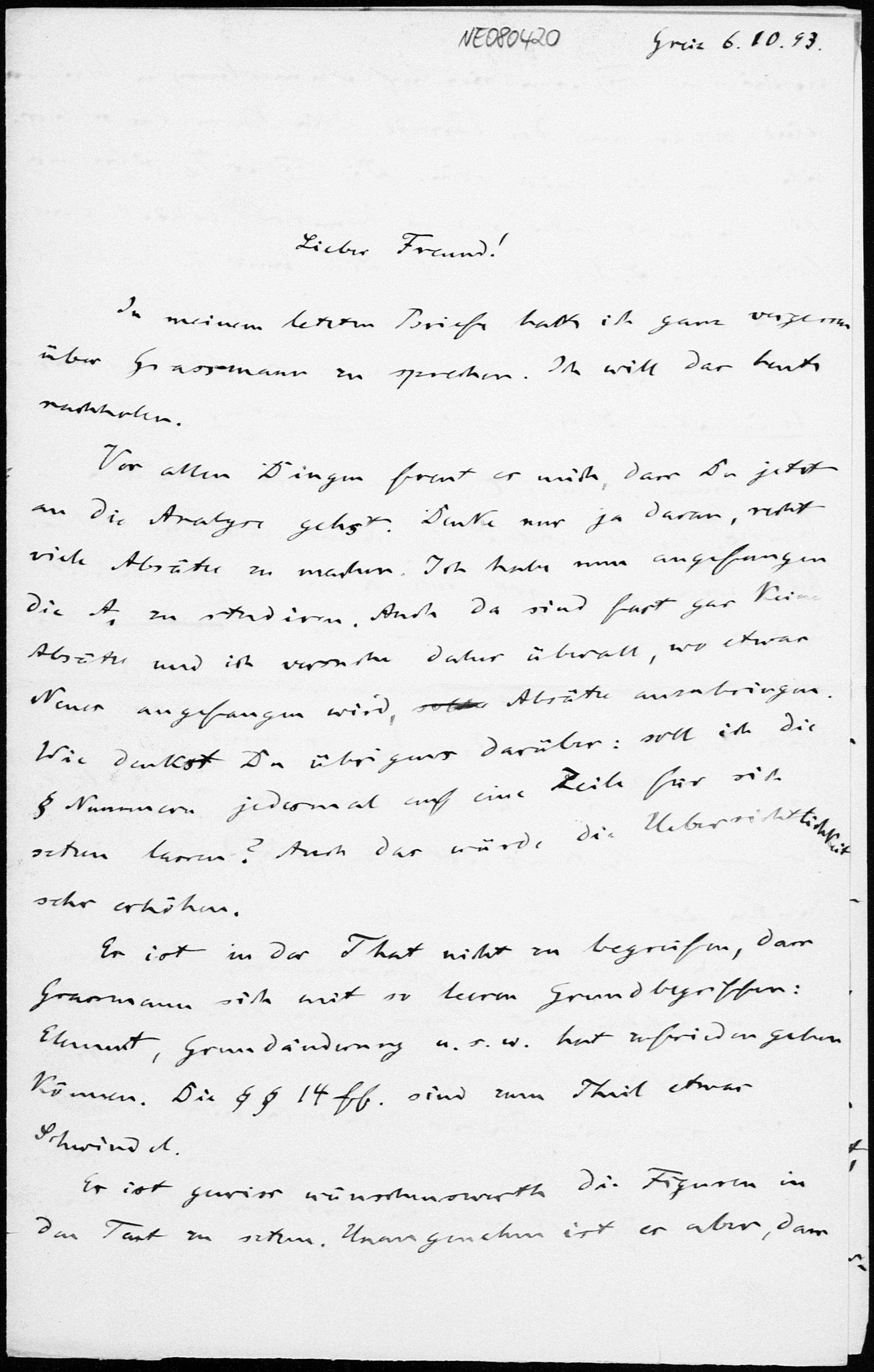 Brief von Friedrich Engel an Eduard Study vom 6.10.1893