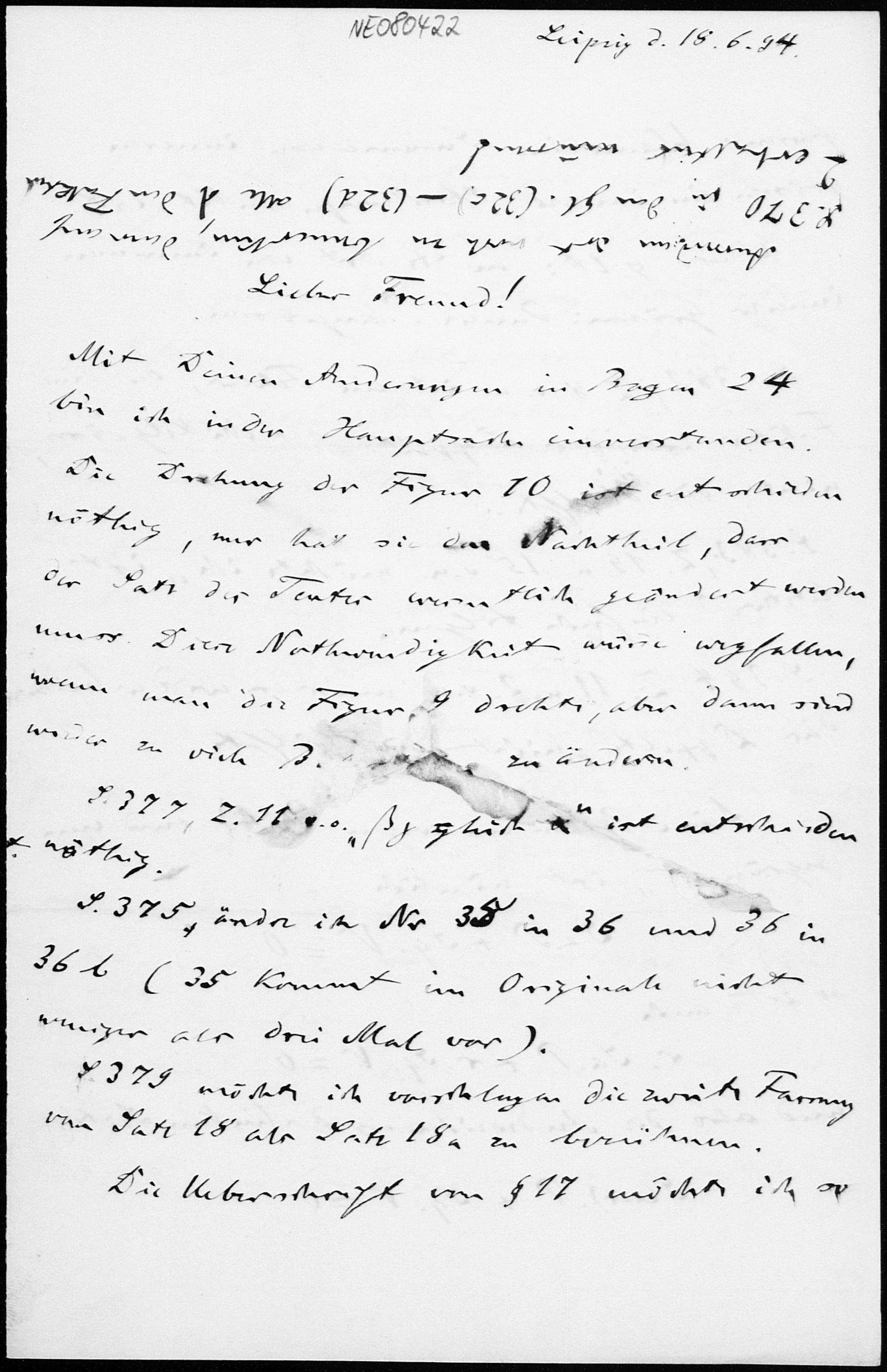 Brief von Friedrich Engel an Eduard Study vom 18.6.1894