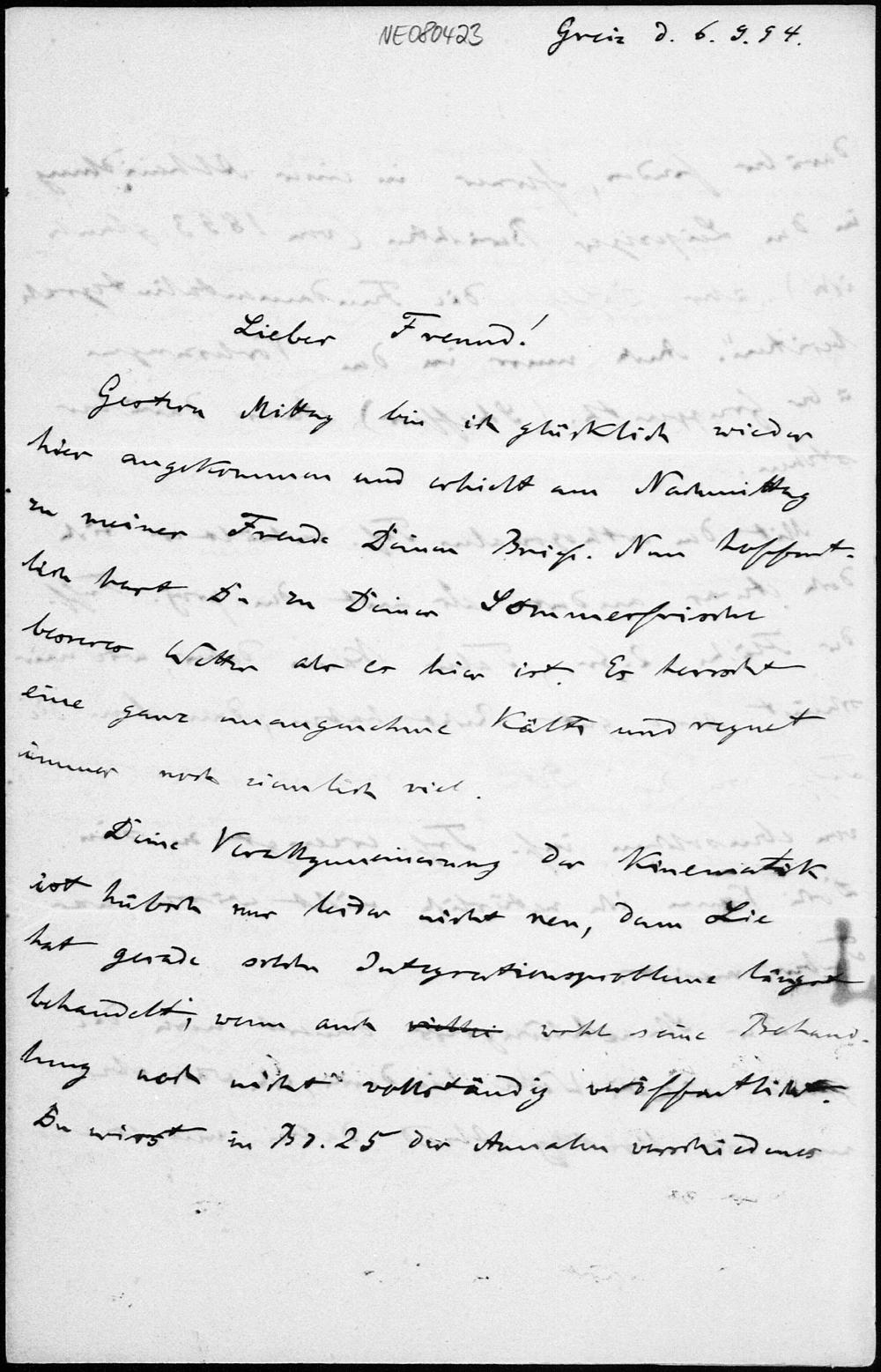 Brief von Friedrich Engel an Eduard Study vom 6.9.1894