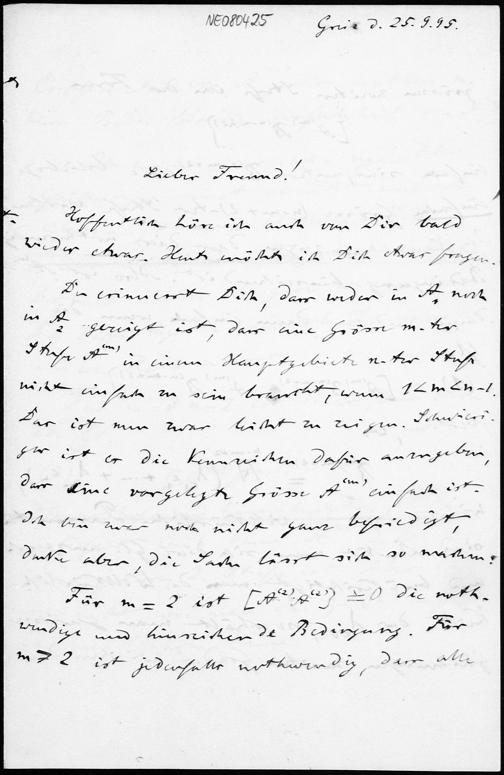 Brief von Friedrich Engel an Eduard Study vom 25.9.1895