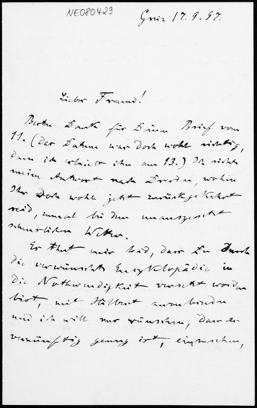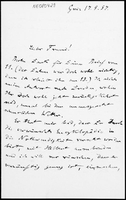 Brief von Friedrich Engel an Eduard Study vom 17.9.1897