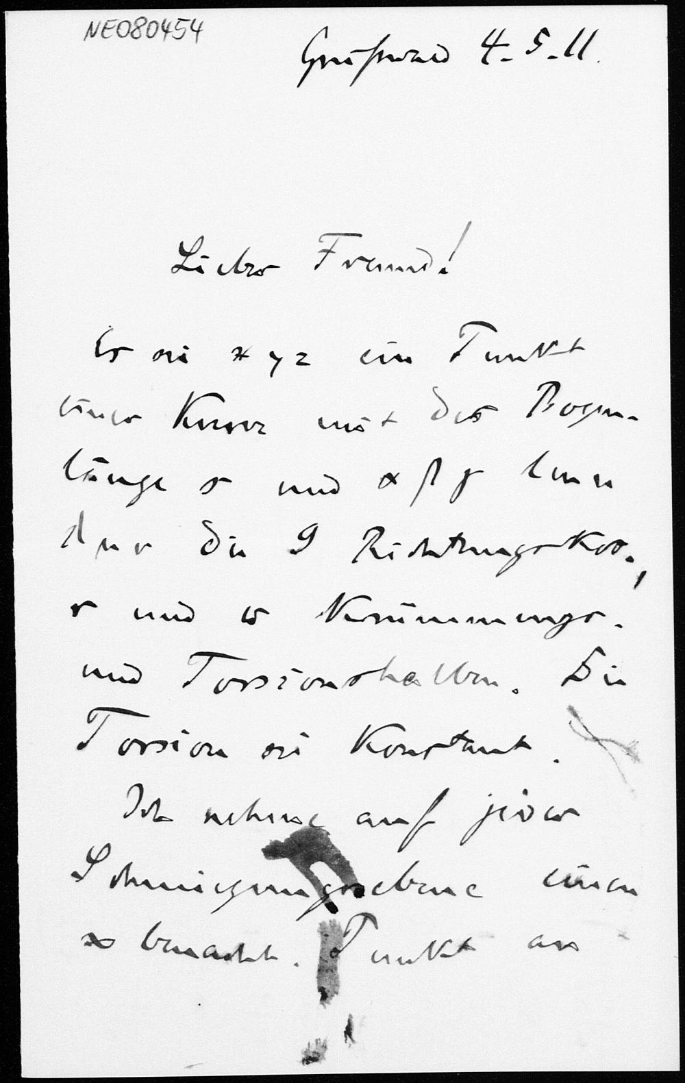 Brief von Friedrich Engel an Eduard Study vom 4.5.1911