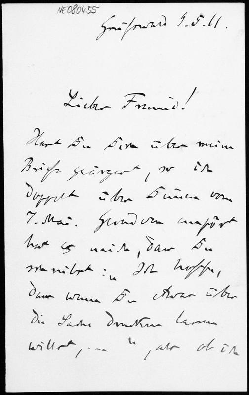 Brief von Friedrich Engel an Eduard Study vom 9.5.1911