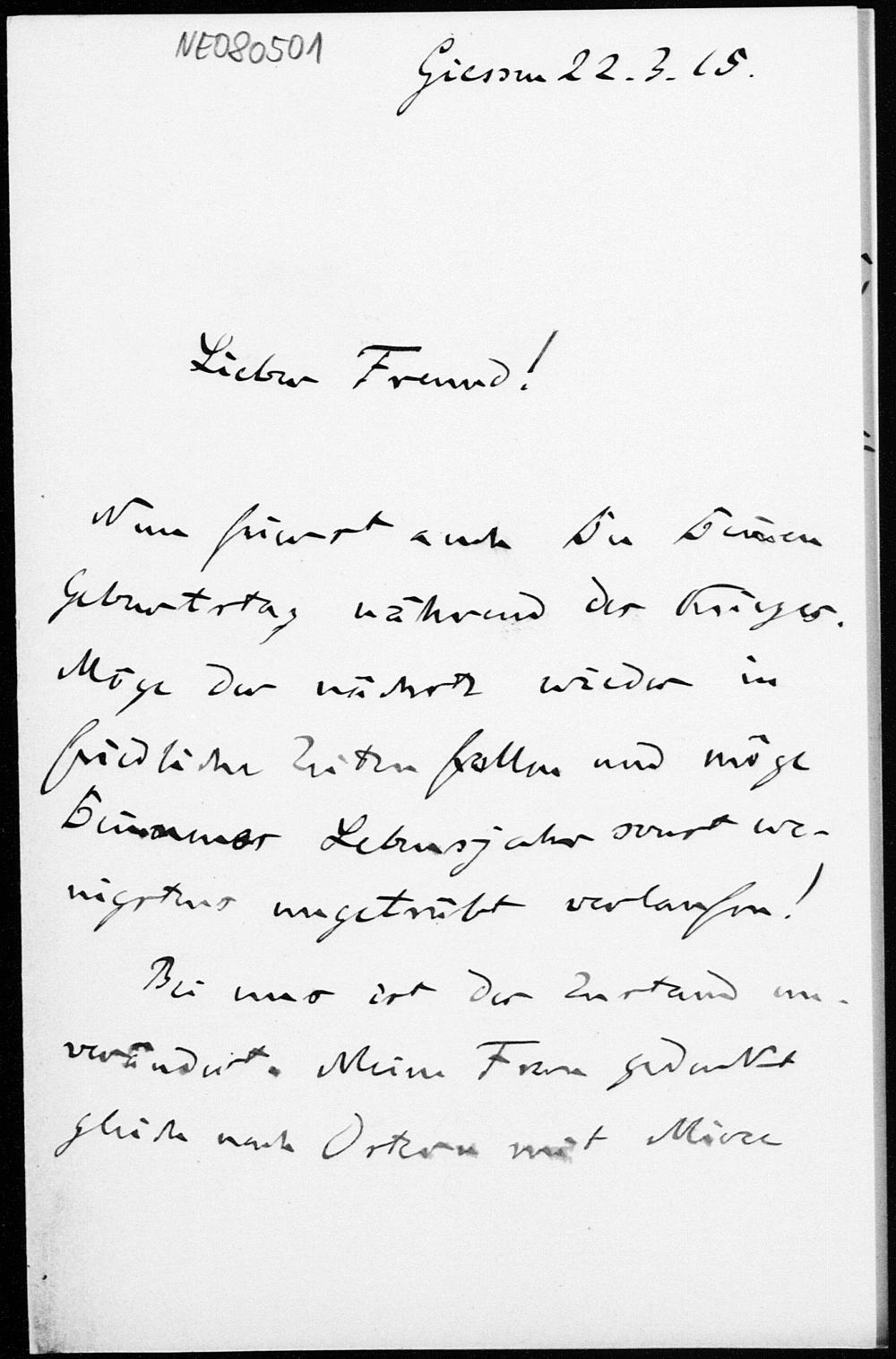 Brief von Friedrich Engel an Eduard Study vom 22.3.1915
