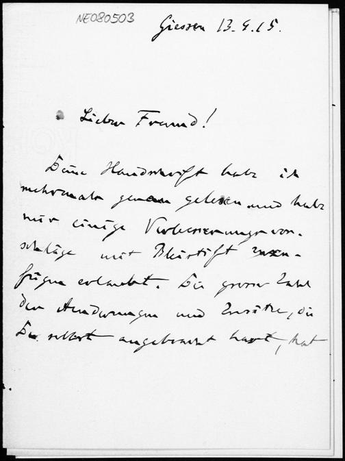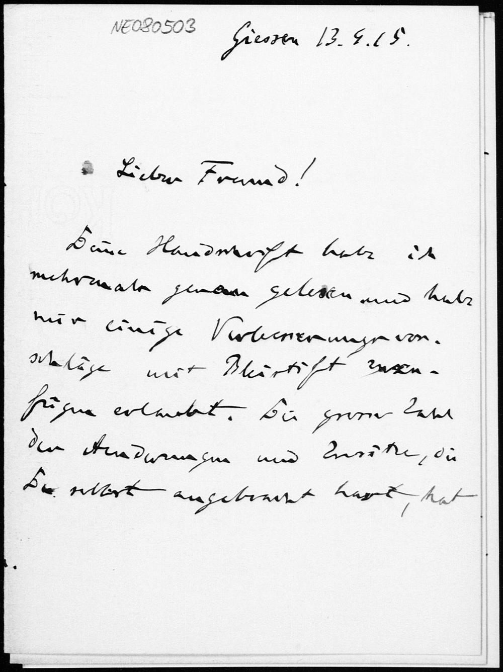 Brief von Friedrich Engel an Eduard Study vom 13.+15./16.9.1915